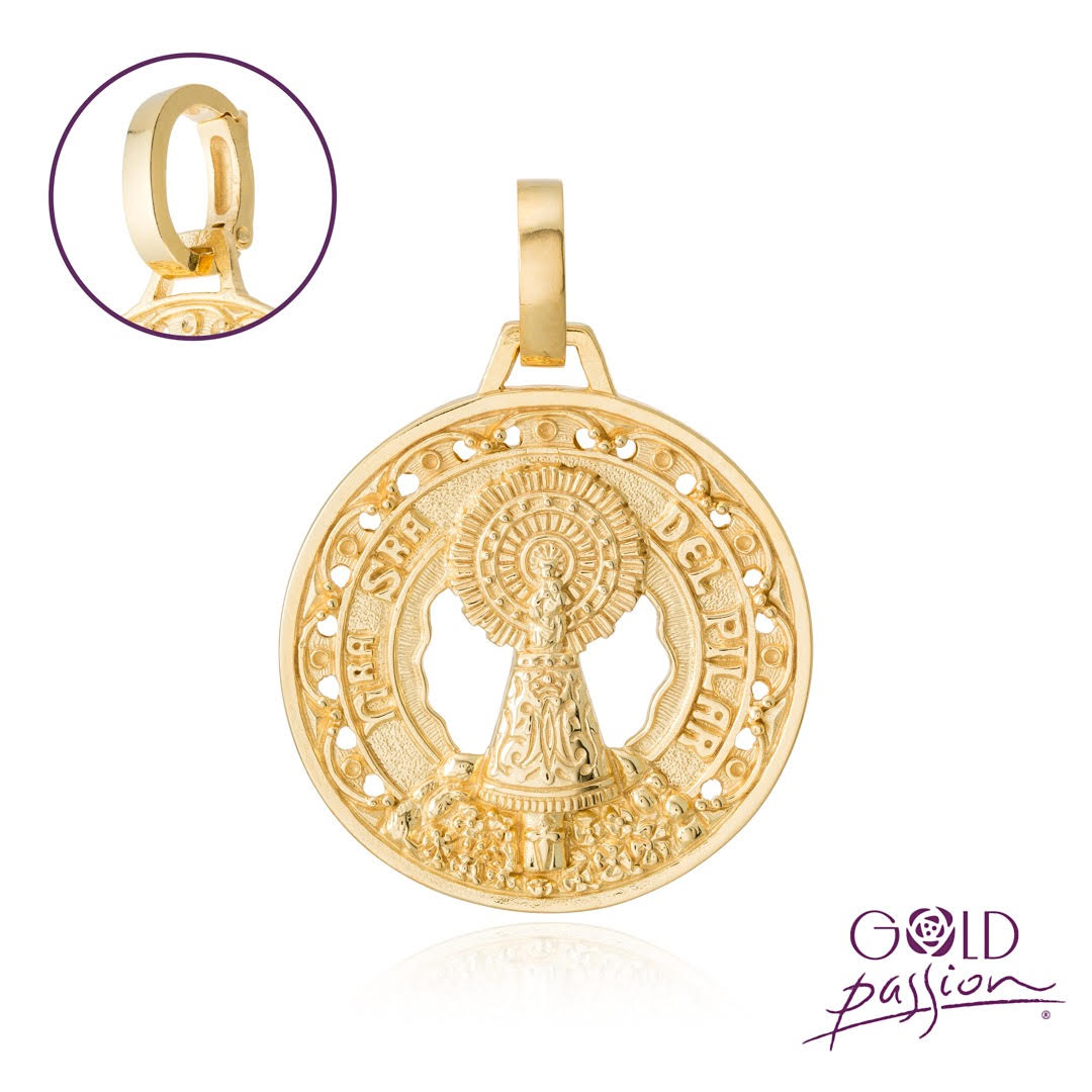 Medalla Virgen del Pilar con asas cierre bisagra  . Plata Chapada Oro.