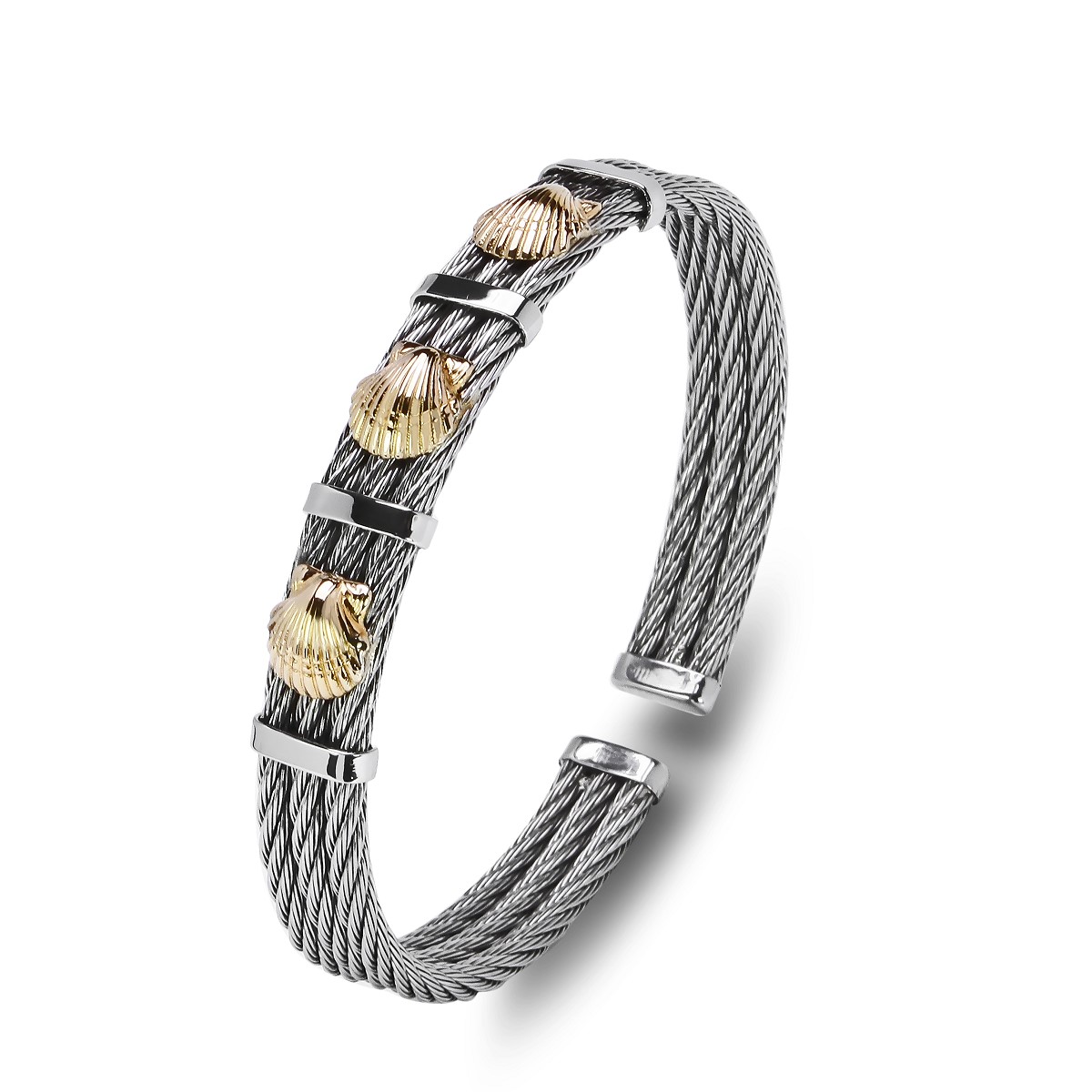 Pulsera Acero-Oro 3 Conchas Camino Nº 0, realiza en Oro 18 Kilates. Colección Cable Xaco.
